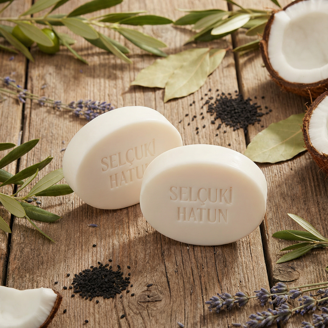 Kadim Anadolu’nun güzellik mirasından ve Osmanlı ile Selçuklu dönemlerinin geleneksel bakım sırlarından ilham alan Selçuki Hatun Sabunu, doğal bitki özleri ve saf yağların zarif birleşiminden oluşur.